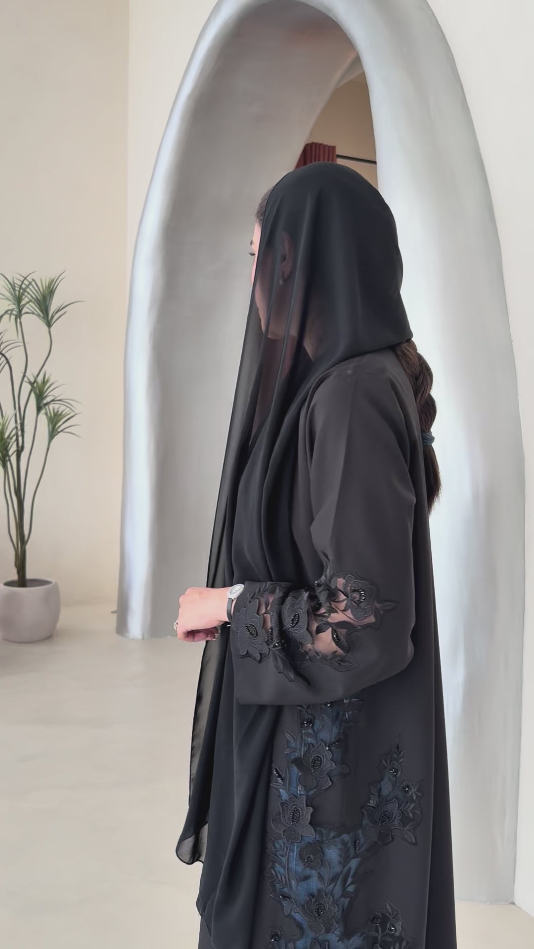 A full black abaya with a Klosh cut