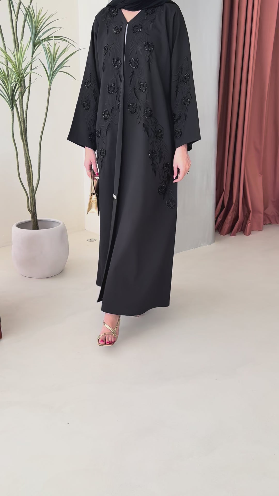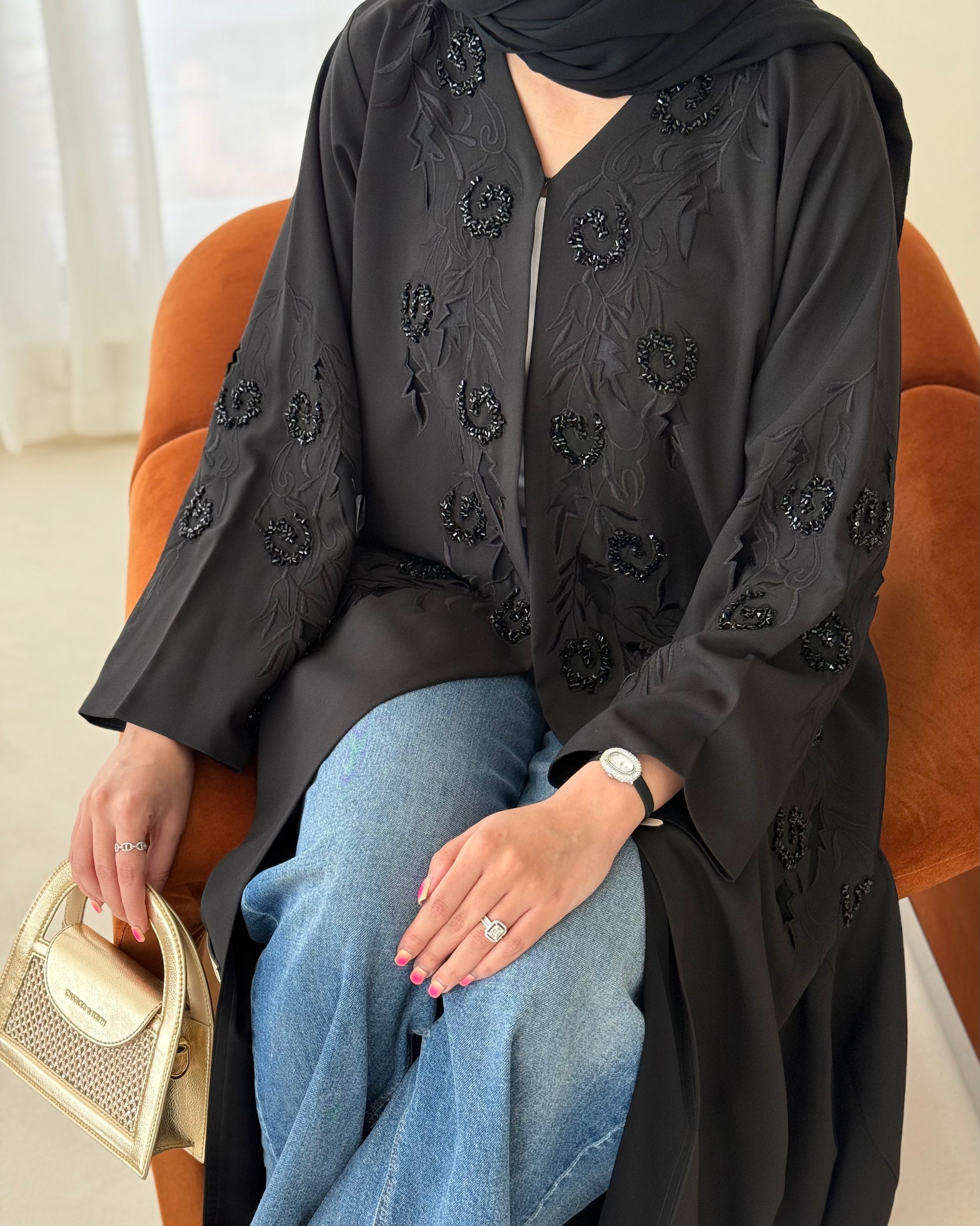 Black abaya featuring exquisite handwork