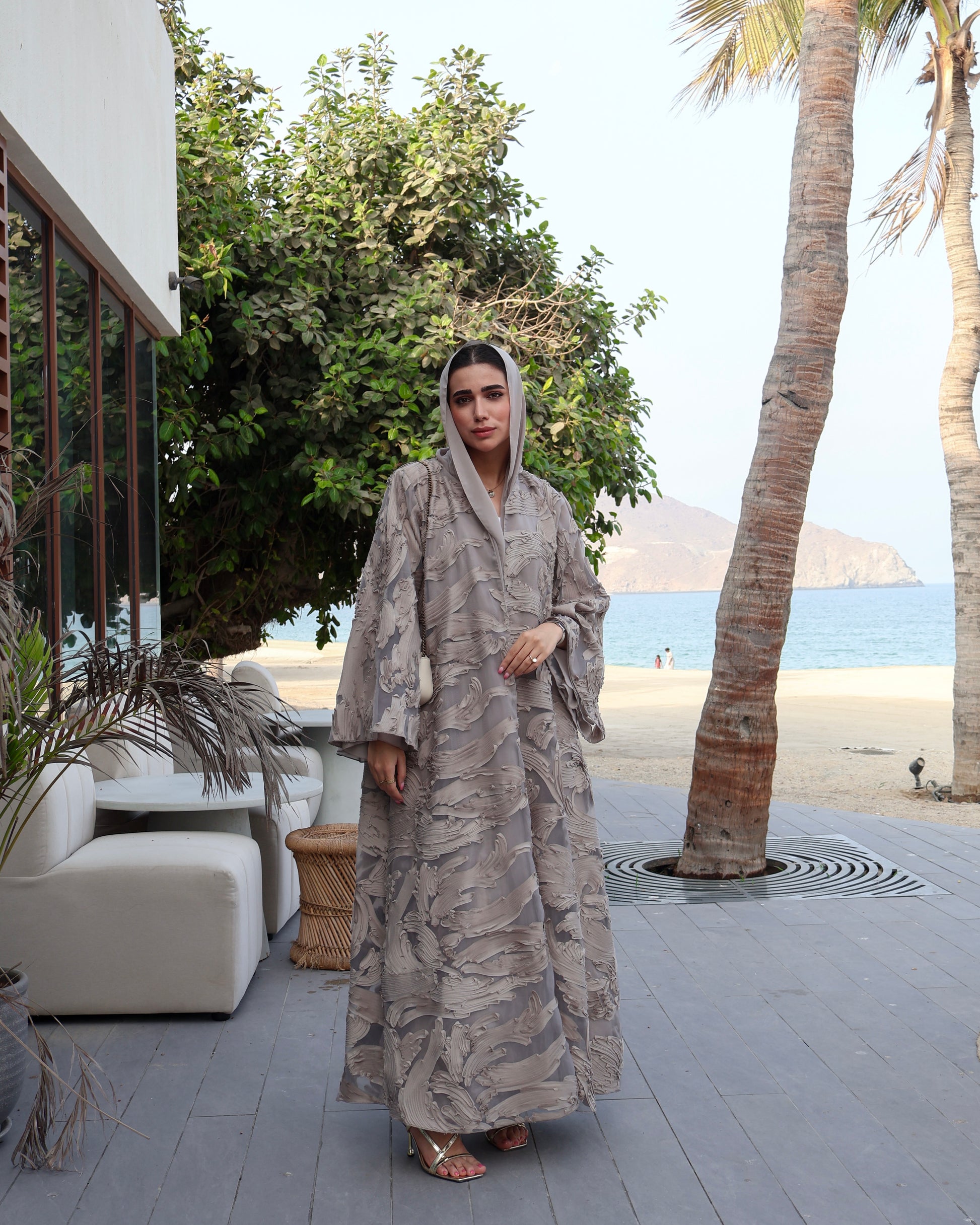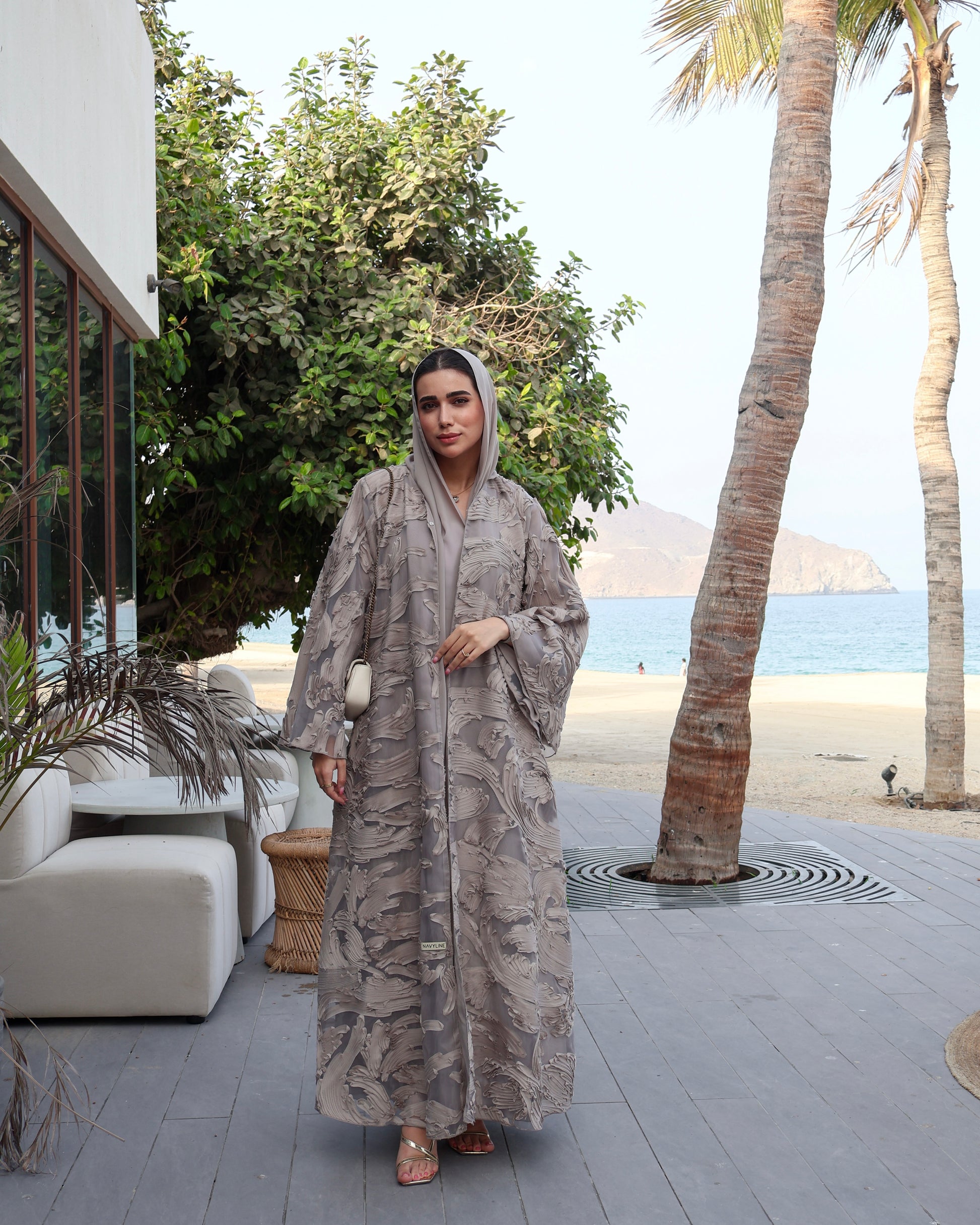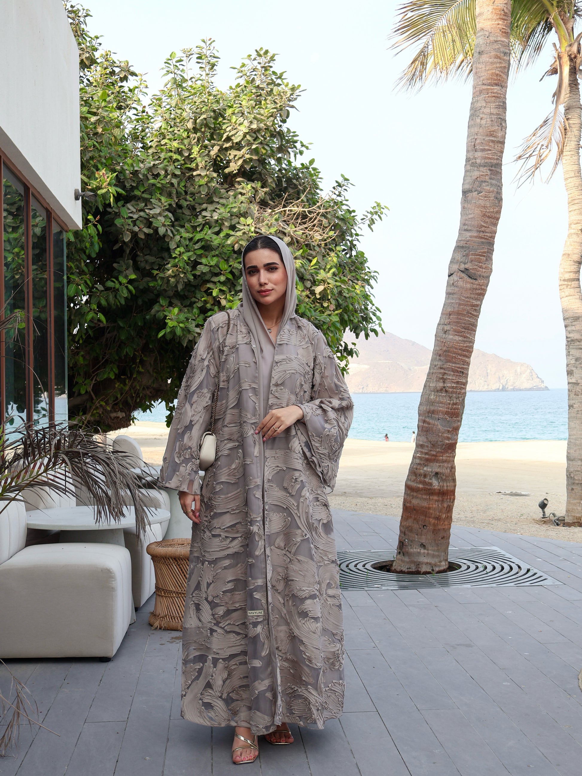 Grey A-line abaya chic, elegant, and perfect for a modern, effortless look.