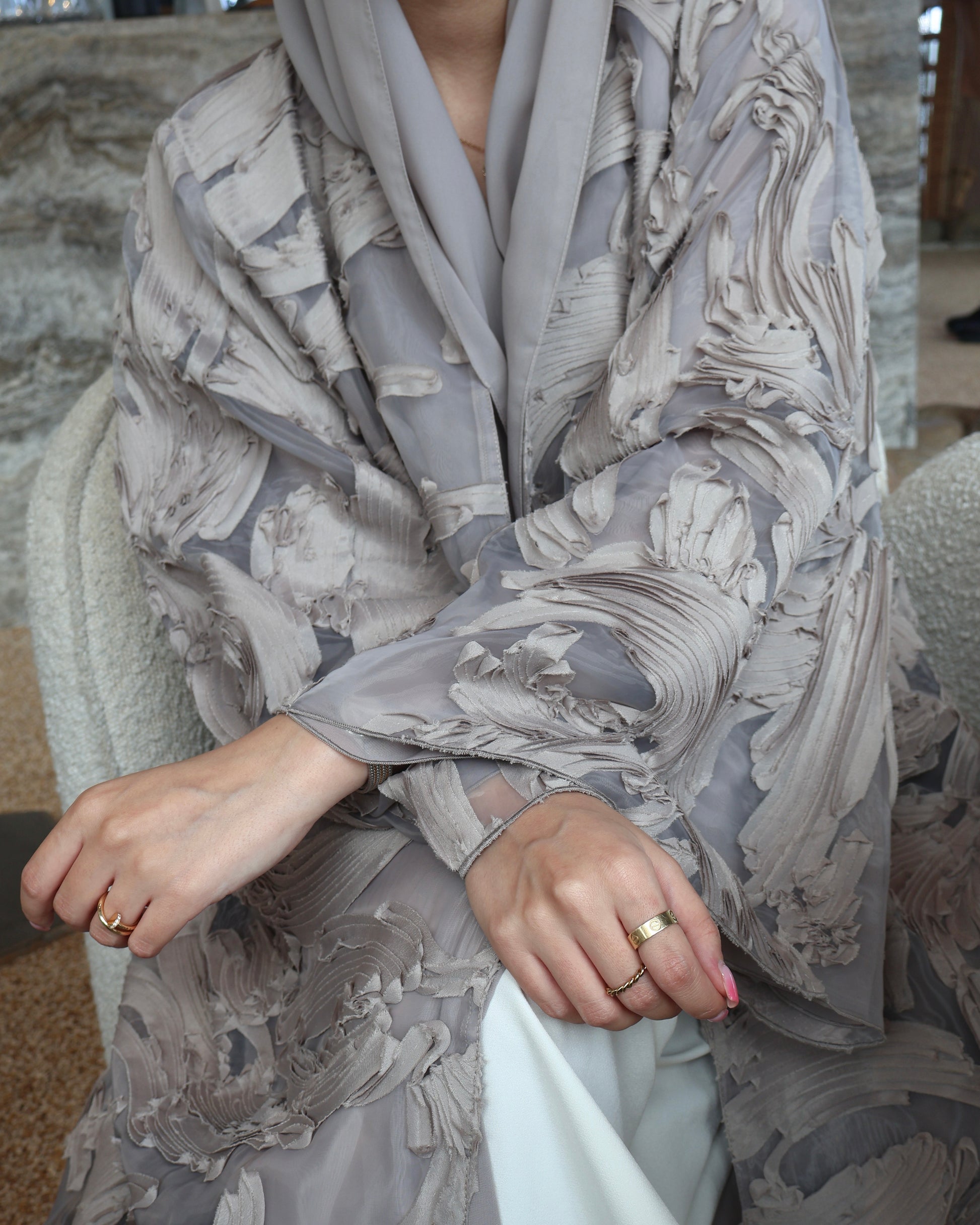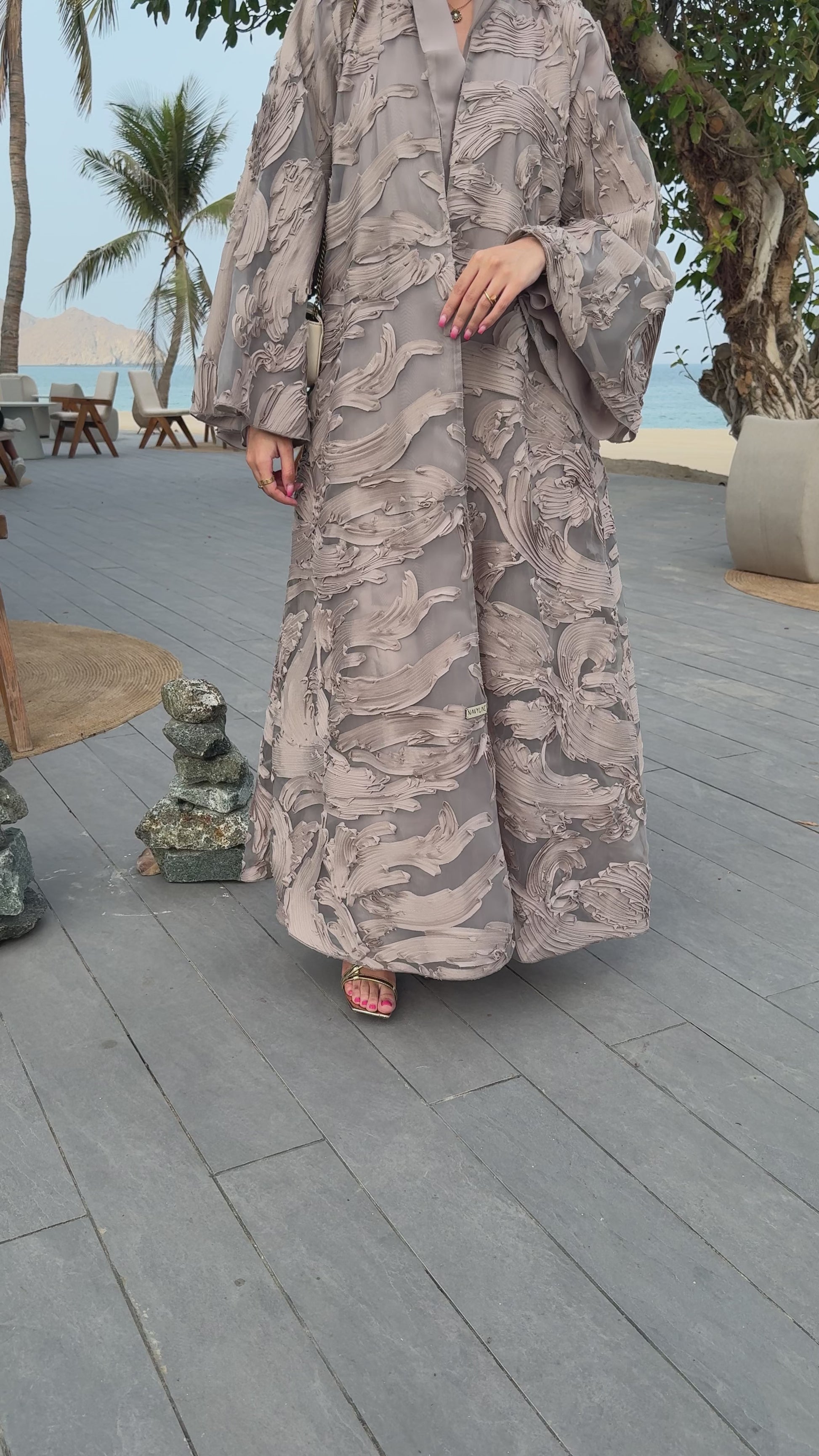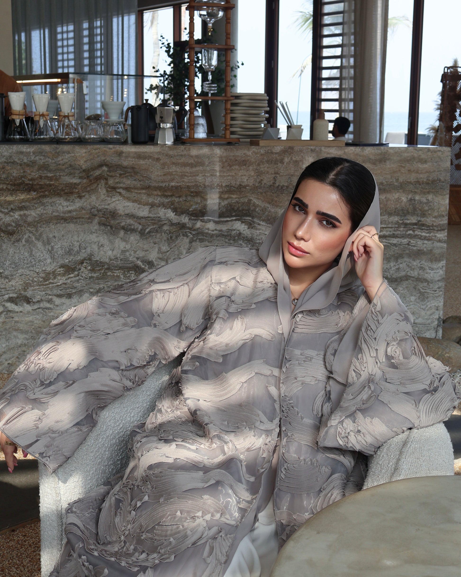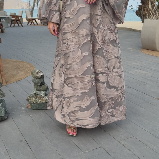 Grey A-line abaya chic, elegant, and perfect for a modern, effortless look.